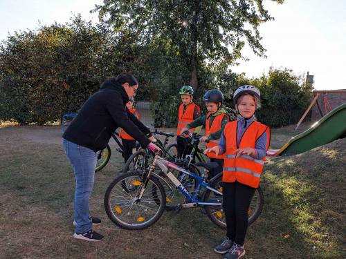 Am 4. Oktober 2023 nahmen vier Kinder der vierten Schulstufe an der Fahrradprüfung teil.