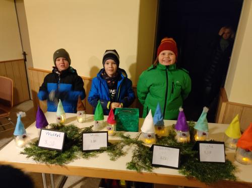 Der Elternverein organisierte einen Punschstand und eine Fackelwanderung. Die gebastelten Weihnachtswichtel wurden verkauft.