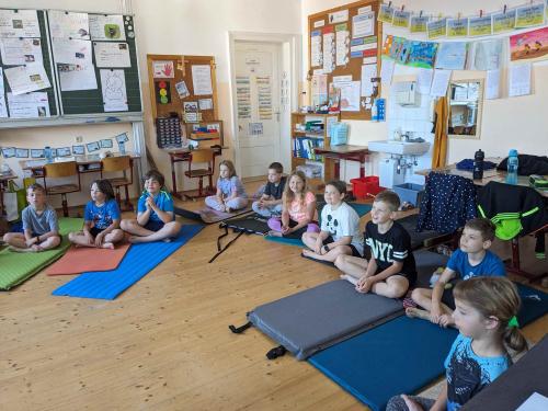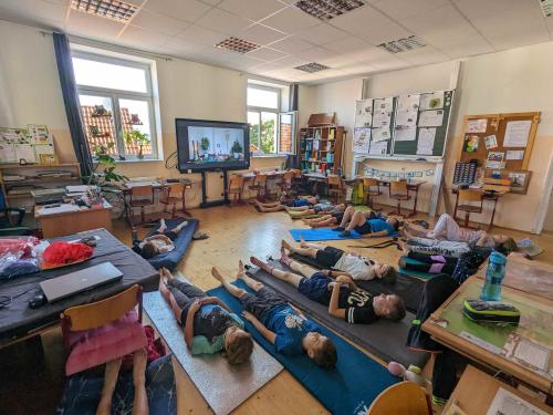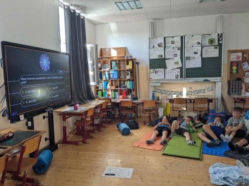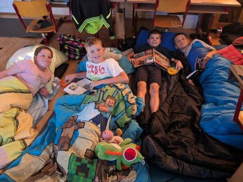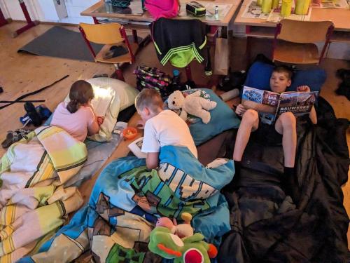 Um 18 Uhr trafen sich alle in der Schule. Am Programm standen ein Lesekino über den Grüffelo, das Gestalten eines Monsters, eine Millionenshow, das Basteln eines Lesezeichens und jede Menge Spaß beim Lesen mit der Taschenlampe. Nach einer ruhigen Nacht gab es eine Yoga-Einheit am Morgen und anschließend ein großartiges Frühstück, welches von den Eltern vorbereitet wurde.