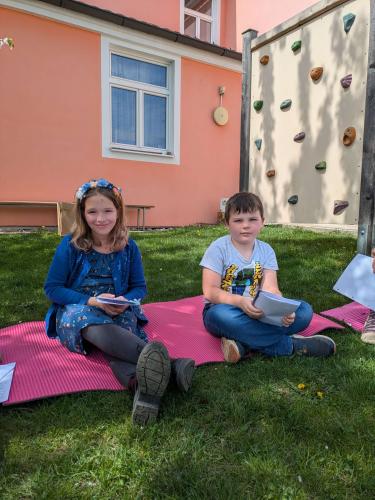 Während ein teil unserer Schüler/innen mit Frau Lehrerin Pind beim Sumsi-Cup waren, beschäftigten sich die andren Kinder in der Schule mit dem Buch „Seine eigene Farbe“. Es wurde sowohl im Bereich soziales Lernen gearbeitet, als auch im Bereich Deutsch und verfassen von Texten. Jeder schrieb und gestaltete sein eigenes kleines Bilderbuch und präsentierte es anschließend stolz. Zum Abschluss begaben wir uns noch auf eine kleine Phantasiereise und genossen die Farben Sonnenstrahlen auf unserer Haut.