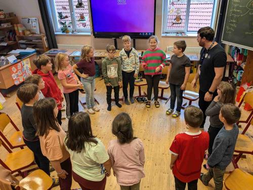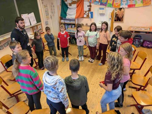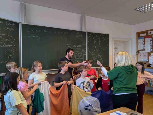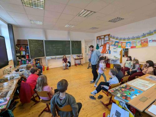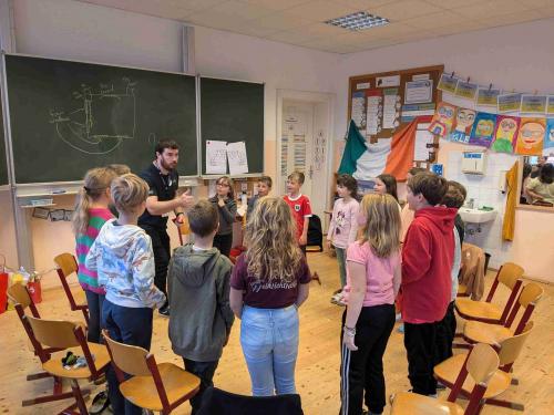 Der Native-Speaker Emmet aus Irland kam zu uns an die Schule und brachte den Kindern der 3. und 4. Schulstufe die englische Sprache auf lebendige Weise näher. Der Schwerpunkt lag dabei auf der Förderung der Sprech- und Hörkompetenz, um den SchülerInnen einen natürlichen Zugang zur englischen Sprache zu ermöglichen.