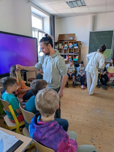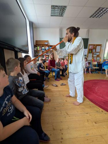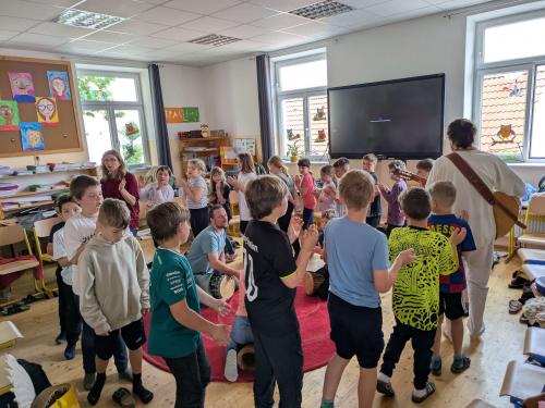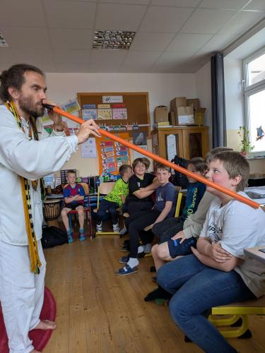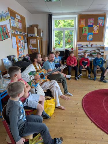 Wir erfuhren anfänglich viel über die Geschichte und die Bräuche dieses besonderen Volkes. Die Huni Kuin nennen sich selbst „Hüter der Erde“. Wir bekamen Einblicke in ihre Musik und sangen und spielten immer besser im Rhythmus dieser Musik mit. Es ging viel ums Spüren, auf einander hören und aufmerksam sein.