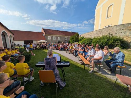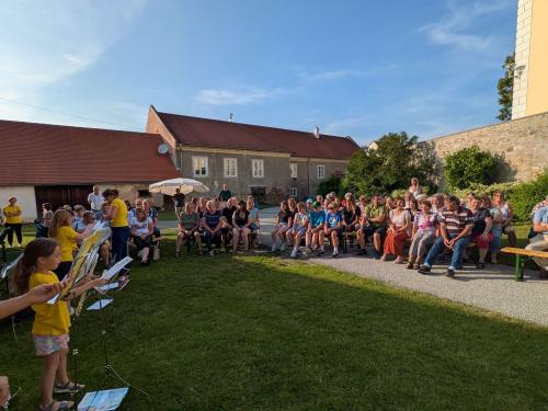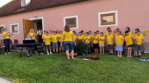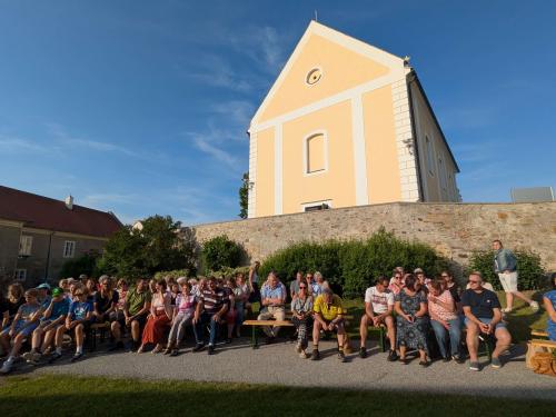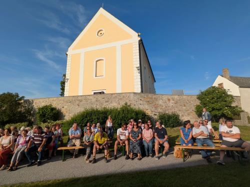 Ort des Geschehens war der Pfarrgarten wo man schon vor Beginn der Veranstaltung leise Orgelmelodien aus der Kirche vernehmen konnte. Da spielte Norbert Offenberger für uns.