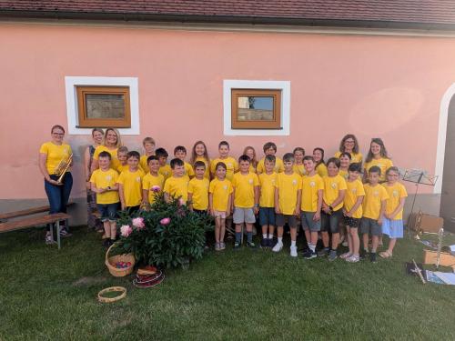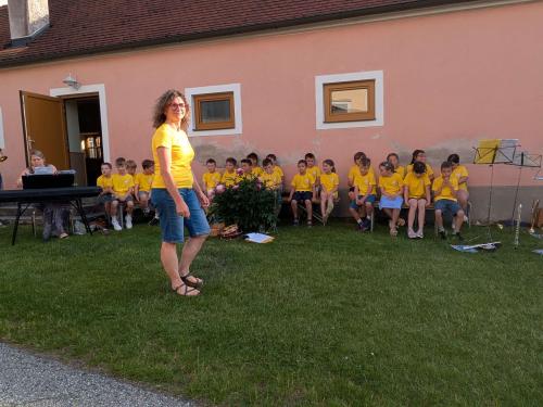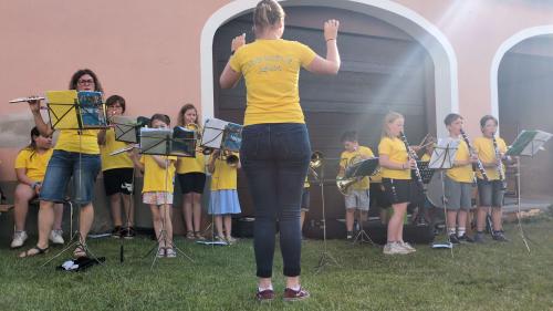 Das Projekt „Bläserklasse Japons“ fand nach einer Laufzeit von 2 Jahren einen Abschluss. Karoline Piffl dirigierte ihre bunte Truppe durch 6 Stücke.