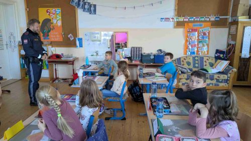Die Kinder der 1. und 2. Schulstufe bekamen am 20. Oktober 2025 Besuch von einem Polizisten.